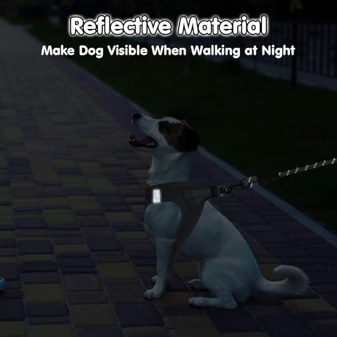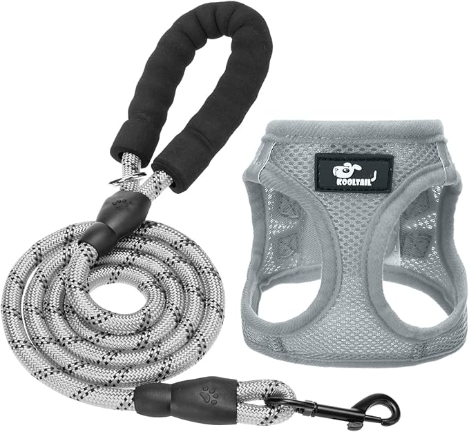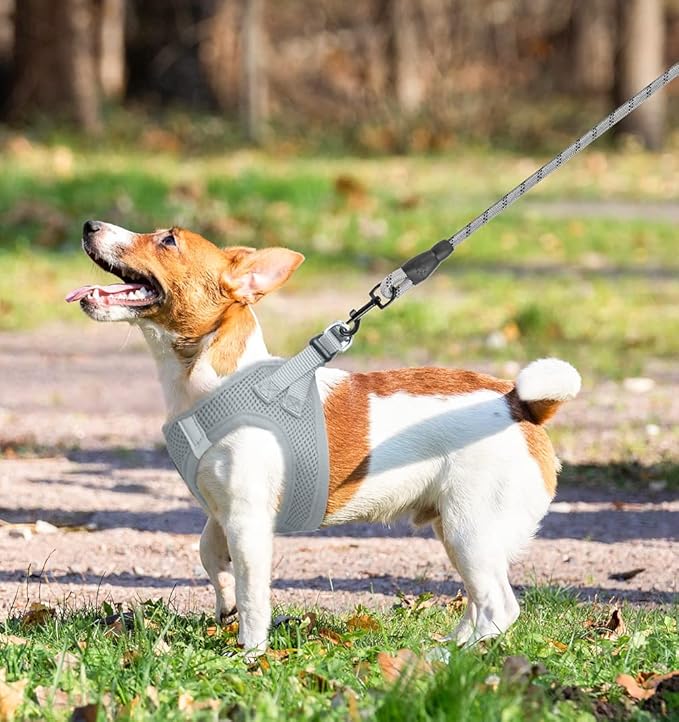 Breathable Air Mesh Dog Harness with Reflective Leash, Adjustable No Pull Step in Vest Harness for Small Dogs Puppies Cats, Grey, Small