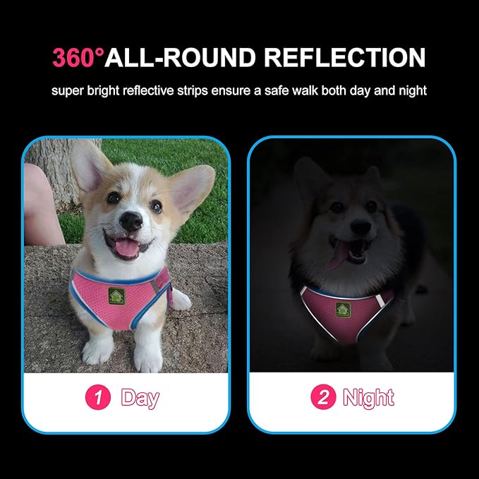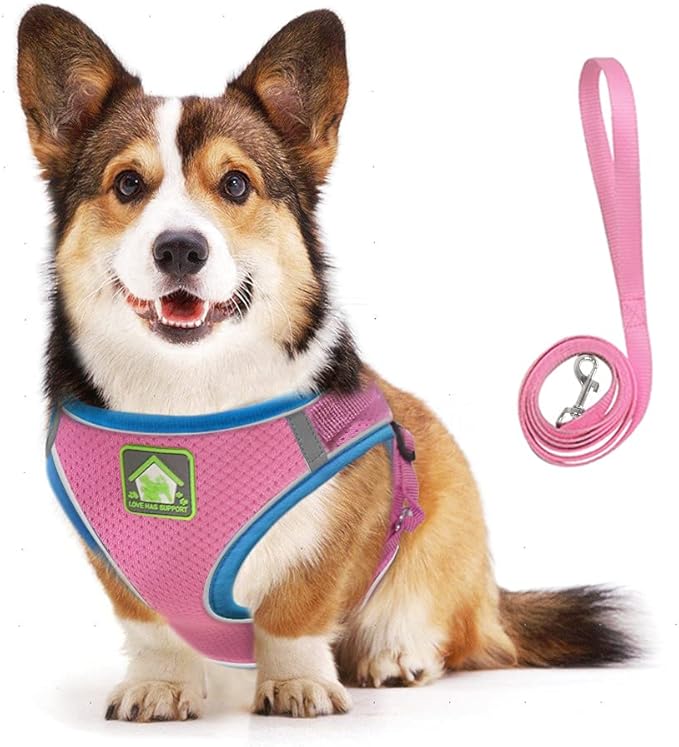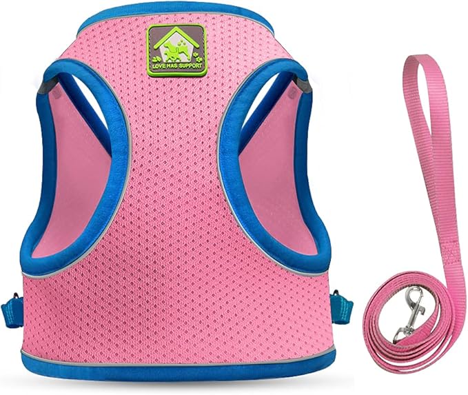 FEimaX Dog Harness and Leash Set, No Pull Soft Mesh Reflective Escape Proof Small Dog Cat Vest Adjustable Pet Outdoor Harnesses for Puppy Kitten Rabbit