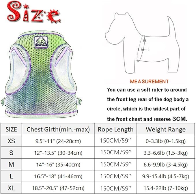 • 🐈Suitable Size - Please measure your pet size accurately before placing an order! If your pet’s chest grith is between the two sizes, it is recommended that you can choose the larger size and adjust the strap to prevent the harness from being too small.