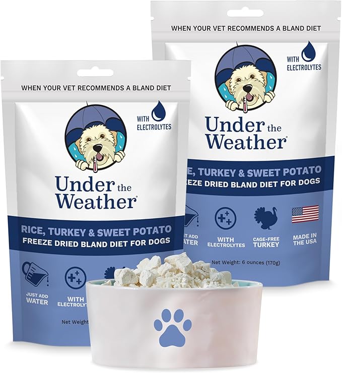 Under the Weather Bland Diet for Dogs | Easy to Digest for Sick Dogs |Always Be Ready| Contains Electrolytes - All Natural Freeze Dried 100% Human Grade Meats| 2 Pack- Rice Turkey & Sweet Potato - 6oz