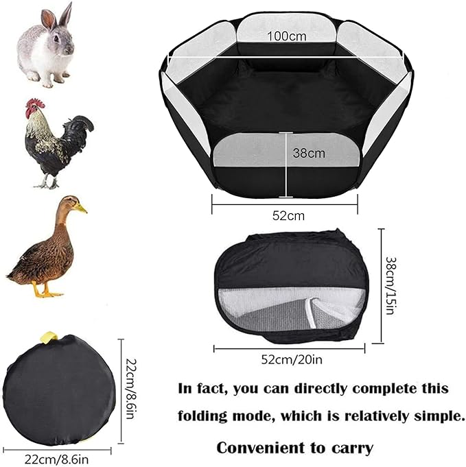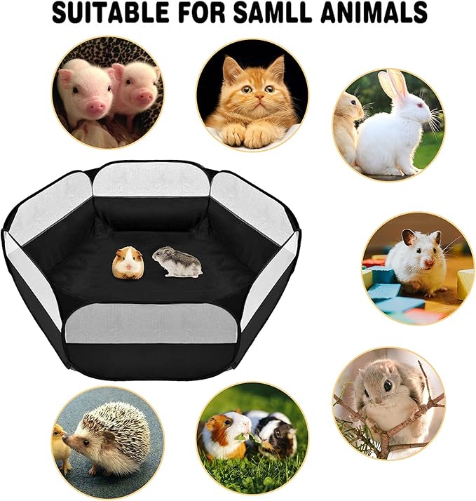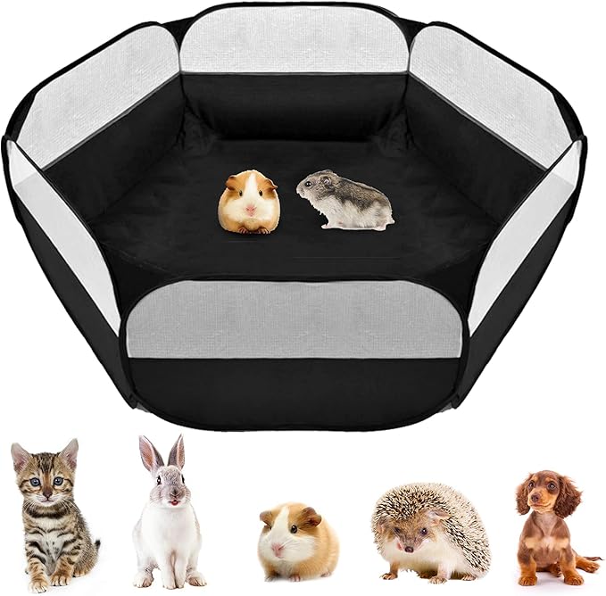 Small Animals Playpen, Outdoor/Indoor Pop Open Pet Exercise Fence, Guinea Pig Accessories Metal Wire Yard Fence C&C Cage Tent for Rabbits, Hamster, Chinchillas and Hedgehogs (Black no Cover)