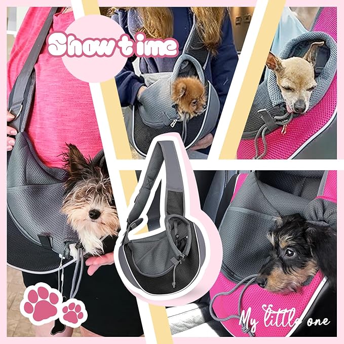YUDODO Pet Dog Sling Carrier Mesh Hand Free Adjustable Dog Satchel Carrier Bag Papoose Crossbody for Small Medium Dog Cat Rabbit (S(up to 5 lbs), Black)