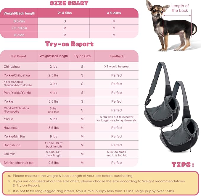 • Sizes and Descriptions: Please measure your pet's weight and size before purchasing. Please refer to our second picture (MEASUREMENT METHOD & SIZE CHART).