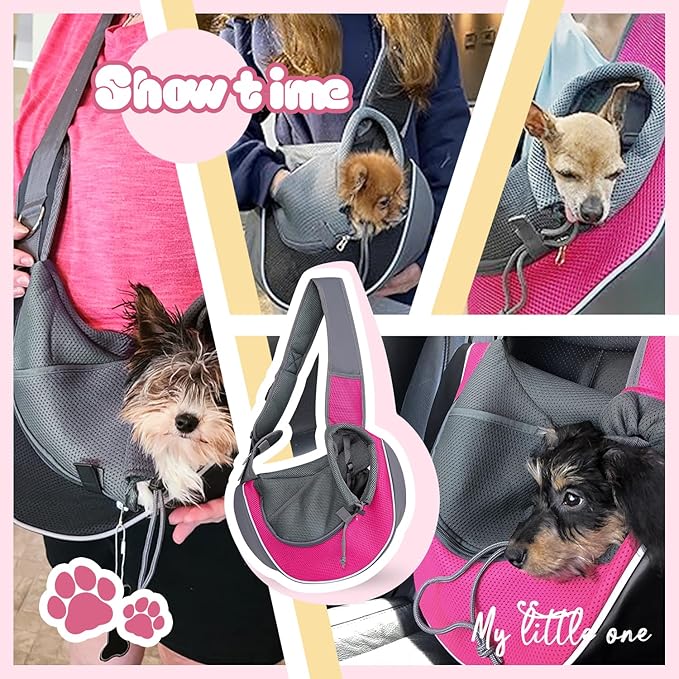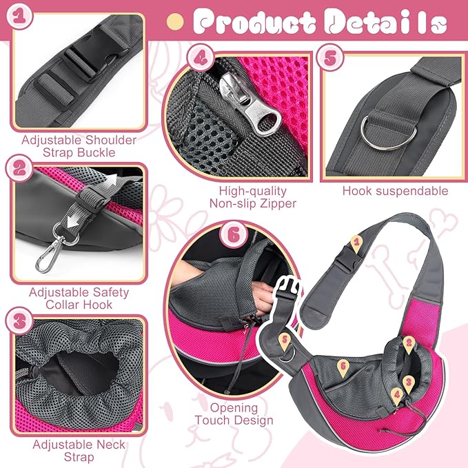 YUDODO Pet Dog Sling Carrier Mesh Hand Free Adjustable Dog Satchel Carrier Bag Papoose Crossbody for Small Medium Dog Cat Rabbit (M(up to 10 lbs), Pink)
