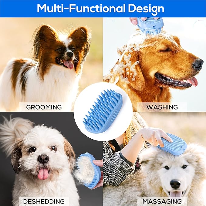 Dog Bath Brush,Rubber Dog Shampoo Grooming Brush, Silicone Shower Wash Curry Brush, Pet Scrubber for Short Long Haired Dogs Cats Massage Comb, Soft Shedding Bathing Brush Removes Loose & Shed Fur