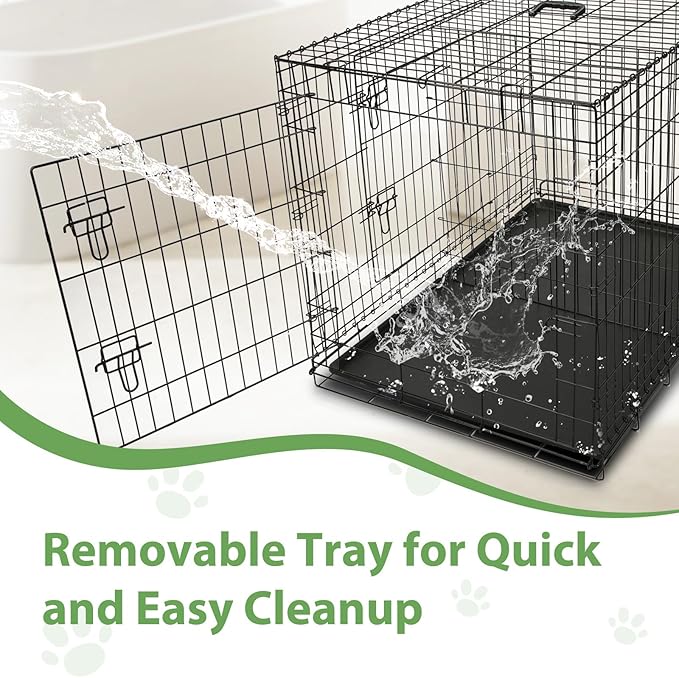Wire Dog Crate Large 42 inches w/Divider Double Door,Heavy Duty, Collapsible and Portable Folding Metal Kennel, Removable Tray, Indoor/Outdoor,Black