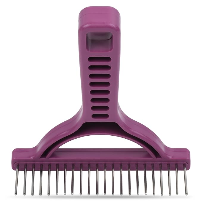 The Untangler Rakes for Grooming and Shedding -silky smooth rotating teeth to easily collect loose hair (Purple, Extra-Long)