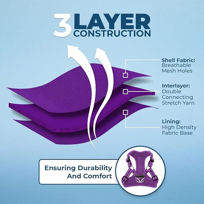 • REFLECTIVE WEBBING: 3M Scotchlite reflective material on the straps of this dog harness enhance your dog’s visibility during those early morning and late evening strolls.
