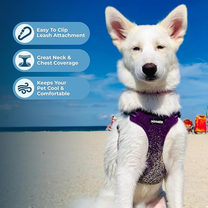 Best Pet Supplies Voyager Adjustable Dog Vest Harness Breathable No Pull Harness for Small, Medium, Large Dogs, Heavy Duty Harness for Walking, Jogging, Easy Step-in, Reflective Stripes - (Purple), S