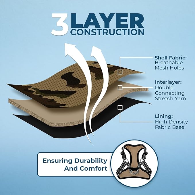 • REFLECTIVE WEBBING: 3M Scotchlite reflective material on the straps of this dog harness enhance your dog’s visibility during those early morning and late evening strolls.