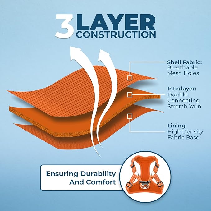 • REFLECTIVE WEBBING: 3M Scotchlite reflective material on the straps of this dog harness enhance your dog’s visibility during those early morning and late evening strolls.