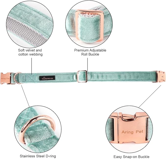 ARING PET Velvet Dog Collars with Bow tie, Dog Bowtie Collar, Adjustable Green Dog Collar,Large.