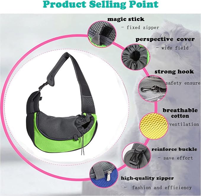 • 【Safe and Convenient】A safety buckle on the inside of the pet sling carrier (it can be connected to a collar) to prevent pets from jumping out. Magic sticker prevents the zipper from slipping and effectively increases safety. The firm buckle design on the shoulder strap is convenient to use and prevents the bag from being disconnected during use.