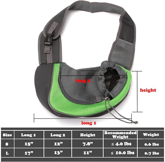 Pet Dog Sling Carrier, Breathable Mesh Portable Travel Safe Pet Sling Shoulder Bag Carrier with Adjustable Non-Slip Shoulder Strap for Small Dogs Cats Puppy (Small, Green)