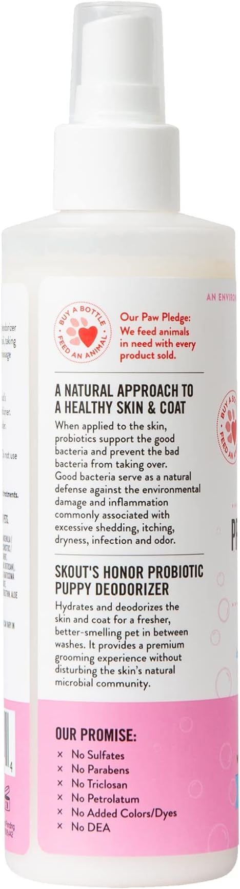 • Hydrates and Deodorizes - Keep your pet smelling fresh and feeling comfortable with Skout's Honor pet deodorizer spray, designed to hydrate and deodorize their skin and coat between washes.