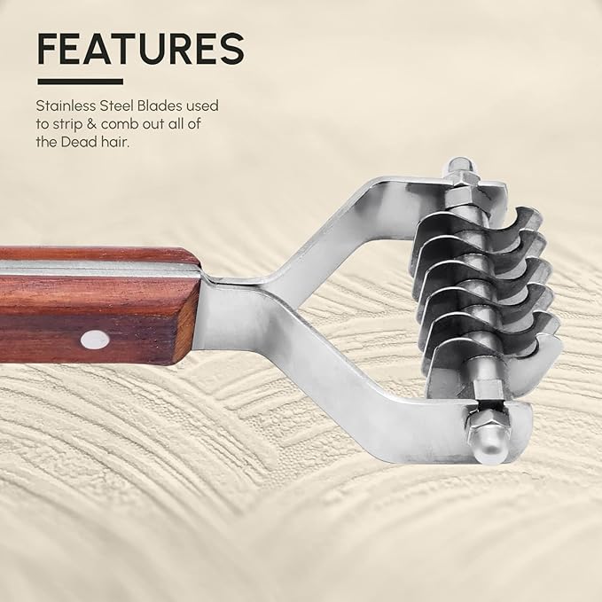 Flamia & Jabz Undercoat Rake for Dogs & Cats, Dematting Grooming Stripper Tool (6 Blades)