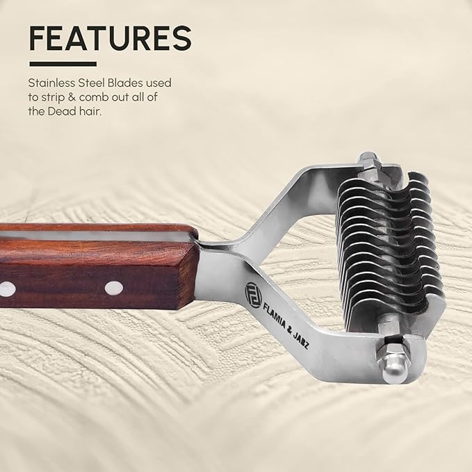 Flamia & Jabz Undercoat Rake for Dogs & Cats, Dematting Grooming Stripper Tool (14 Blades)