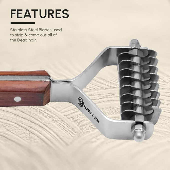Flamia & Jabz Undercoat Rake for Dogs & Cats, Dematting Grooming Stripper Tool (8 Blades)