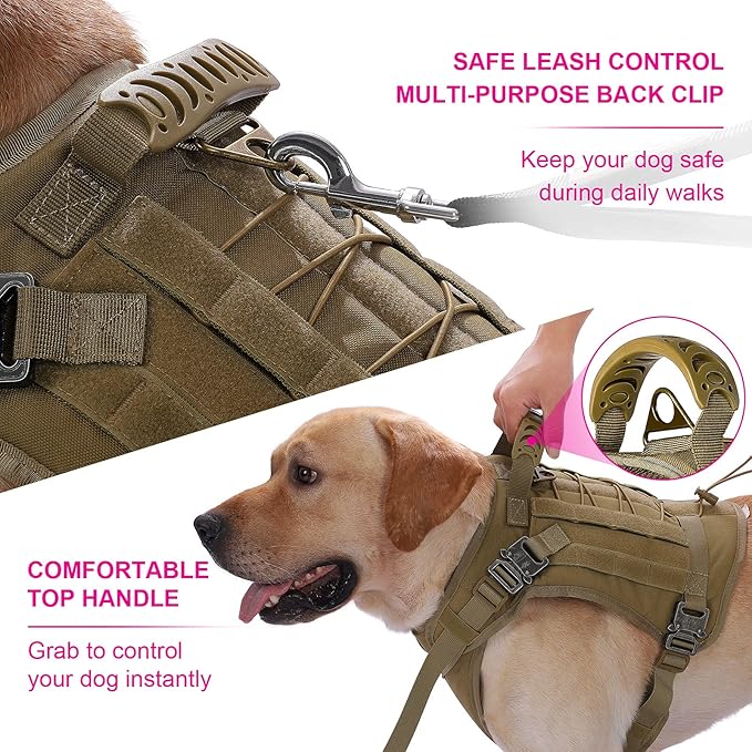 Tactical Dog Harness with All 4 Metal Buckle, Working Dog Vest with Reflective Patch and Reflective Do Not Pet Patch, Dog Vest Harnesses with Handle, Black for Small,Medium, Large Dog, Brown XL