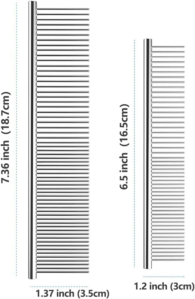 • ✔️ Premium Material - Our dog grooming comb are made of stainless steel, durable, corrosion-resistant and not easy to fade, they can effectively prevent static electricity and give your lovely pet a comfy combing experience.