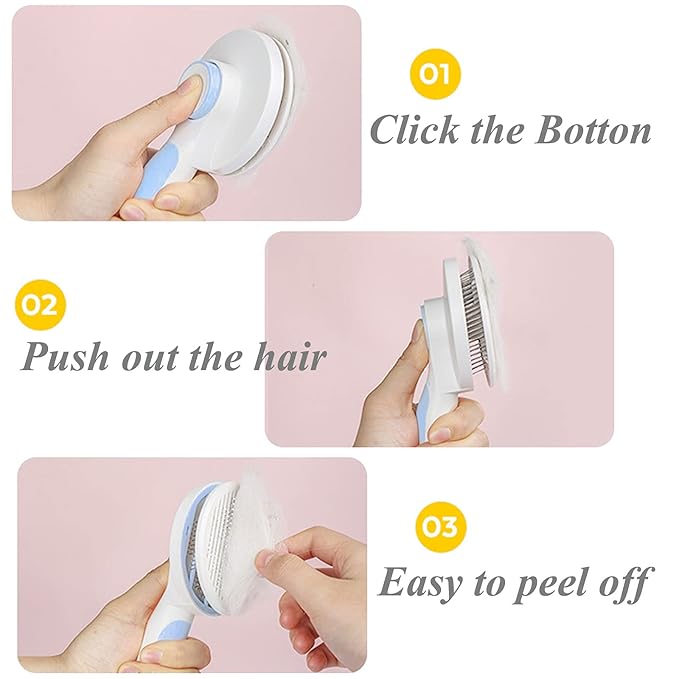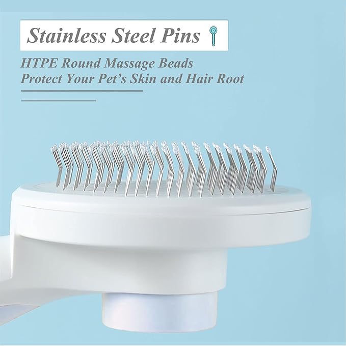 • 😻Easy use and One Button Self Cleaning - Simply press the button on the back after brushing your pets to release all loose hairs from brush. Self Cleaning design makes it easily to push out and peel off all hair for next time. Whole Body waterproof, no worries of dirt and small hair, keep it dry and clean.