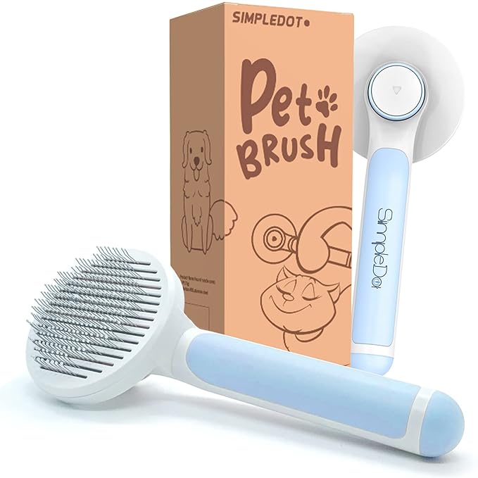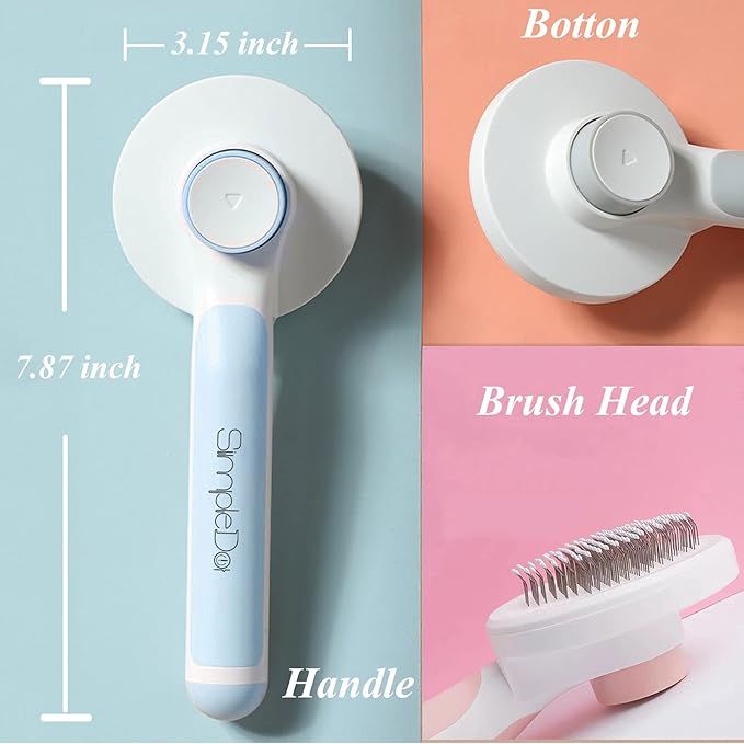 Slicker Brush for Dogs and Cats, Self Cleaning Hair Brush, Removes Undercoat Loose hair, Mats, Tangled and Dirt, Massages, for all hair types (Blue)