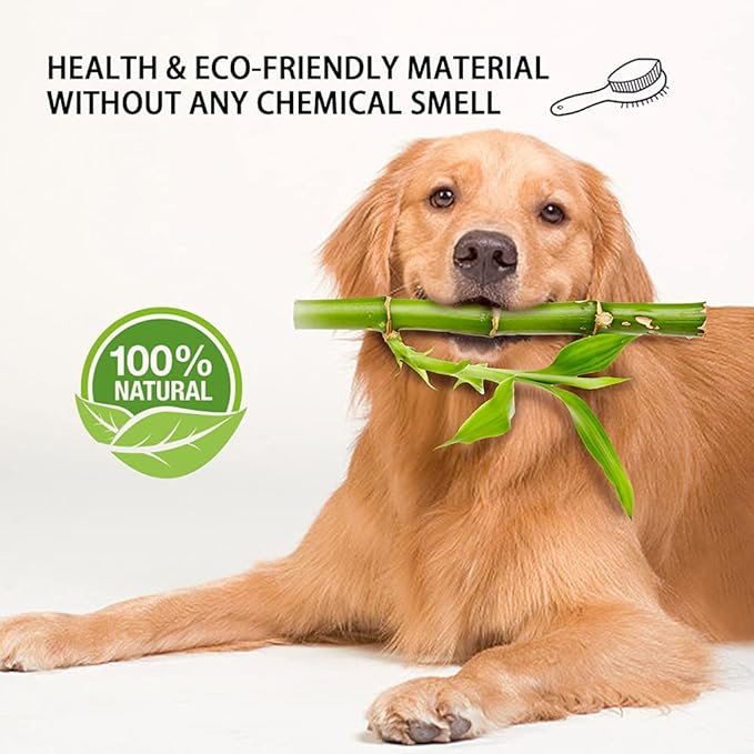 • STURDY BAMBOO FRAME-This aesthetic oval bamboo dog brush is sturdy, healthy and handy. Ergonomic grip design of this detangler brush for dog effectively reduce de-matting related stress after a long time use and coated bamboo body ensures durability.