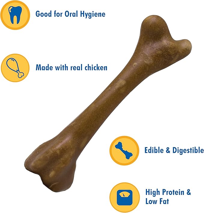 • Chicken flavored chew bone reduces plaque and tartar buildup while your pup chews to her heart’s content.