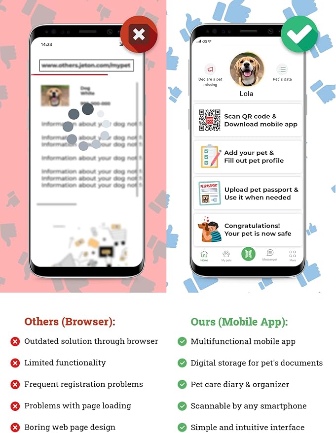 • Multifunctional Mobile App - Pet tags for dogs & cats are linked to your pet's profile. You can keep pet's documents digitized and structured, effectively plan events in pet's life. You may store information about several pets at the same time.