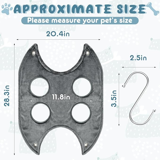• Durable material: this pet hammock helper is made of flannel fabric, which is soft and comfortable to touch, close to skin and will release the pressure of your pets while being hung up, skin-friendly and give your pets comfortable wearing experience