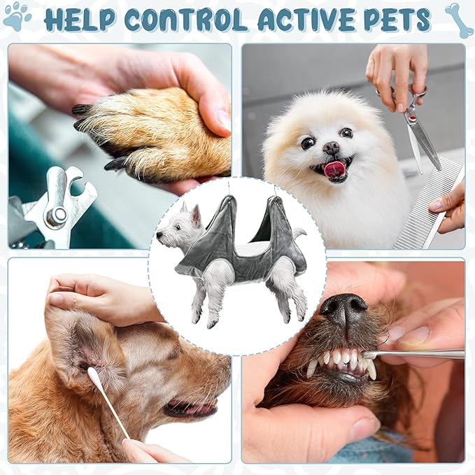 Shappy Dog Grooming Hammock Harness Pet Hammock Helper Towel Dog Restraint Bag Cat Grooming Sling Holder for Nail Trimming Clipping Bathing Washing(Middle,Gray)