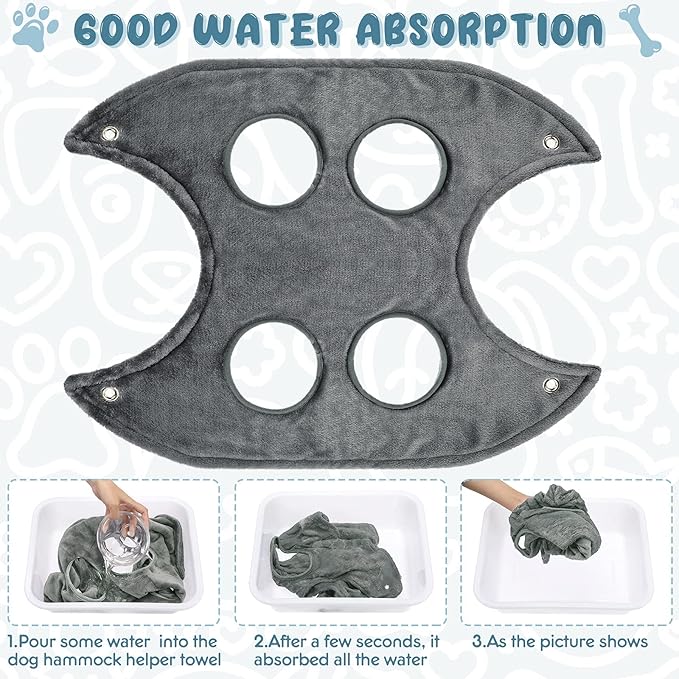 • Wide usage: you can use the pet grooming hammock helper to trim your pet's nails, trim hair, groom, wash face, pick ears, but also use it as a bath towel to dry your pet after bathing, which is a practical tool for your pets care
