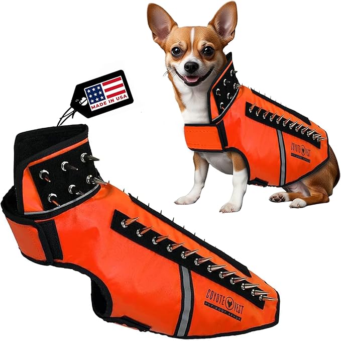 CoyoteVest SpikeVest Dog Harness Vest for Small Dogs, Reflective Dog Vest with Spikes to Shield Your pet from Coyotes, Raptor and Animal Attacks, Anti Hawk Vest, Made in USA (M-Fluorescent Orange)