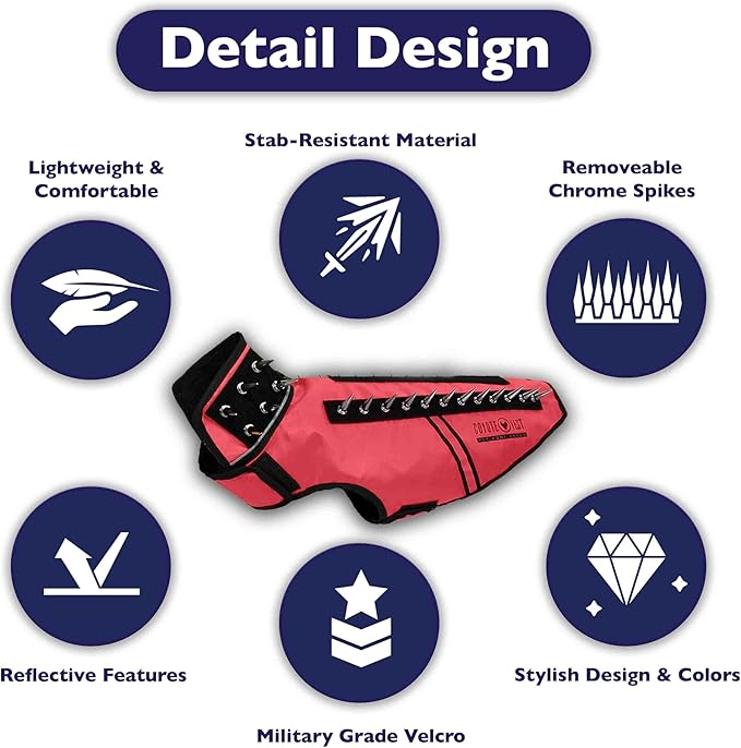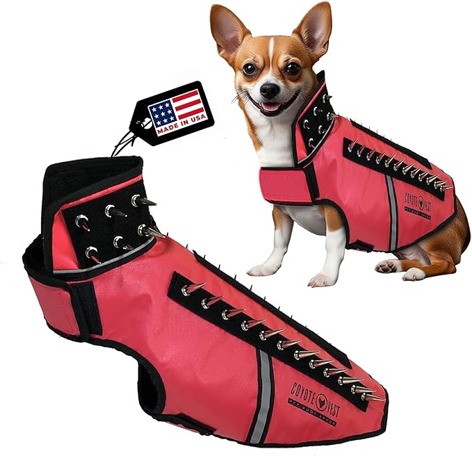 CoyoteVest SpikeVest Dog Harness Vest for Small Dogs, Reflective Dog Vest with Spikes to Shield Your pet from Coyotes, Raptor and Animal Attacks, Anti Hawk Vest, Made in USA (M-Red)