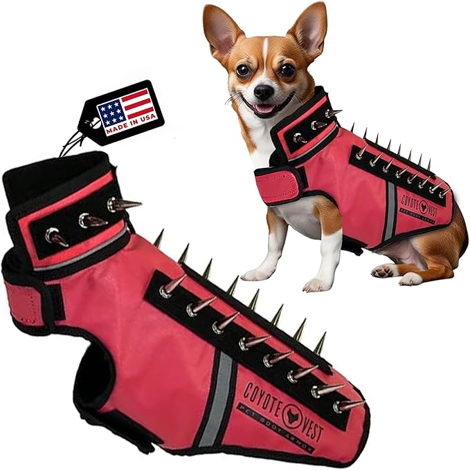 CoyoteVest SpikeVest Dog Harness Vest for Small Dogs, Reflective Dog Vest with Spikes to Shield Your pet from Coyotes, Raptor and Animal Attacks, Anti Hawk Vest, Made in USA (XS-Red)