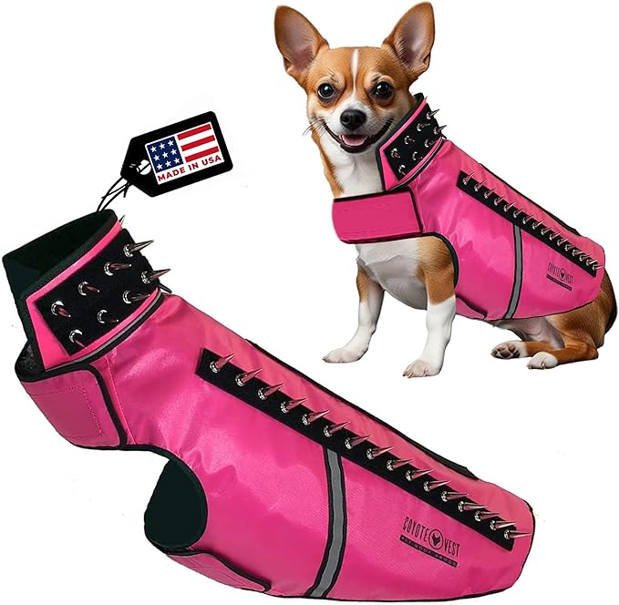 CoyoteVest SpikeVest Dog Harness Vest for Small Dogs, Reflective Dog Vest with Spikes to Shield Your pet from Coyotes, Raptor and Animal Attacks, Anti Hawk Vest, Made in USA (L-Pink)