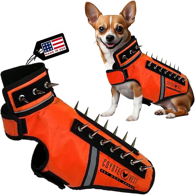 CoyoteVest SpikeVest Dog Harness Vest for Small Dogs, Reflective Dog Vest with Spikes to Shield Your pet from Coyotes, Raptor and Animal Attacks, Anti Hawk Vest, Made in USA (XXS-Fluorescent Orange)