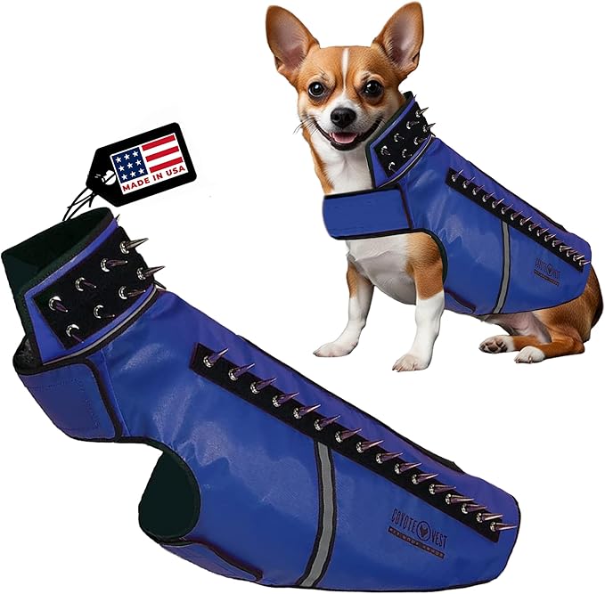 CoyoteVest SpikeVest Dog Harness Vest for Small Dogs, Reflective Dog Vest with Spikes to Shield Your pet from Coyotes, Raptor and Animal Attacks, Anti Hawk Vest, Made in USA (L-Royal Blue)