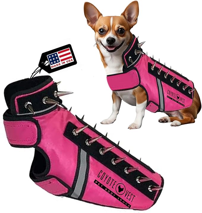CoyoteVest SpikeVest Dog Harness Vest for Small Dogs, Reflective Dog Vest with Spikes to Shield Your pet from Coyotes, Raptor and Animal Attacks, Anti Hawk Vest, Made in USA (XXS-Pink)