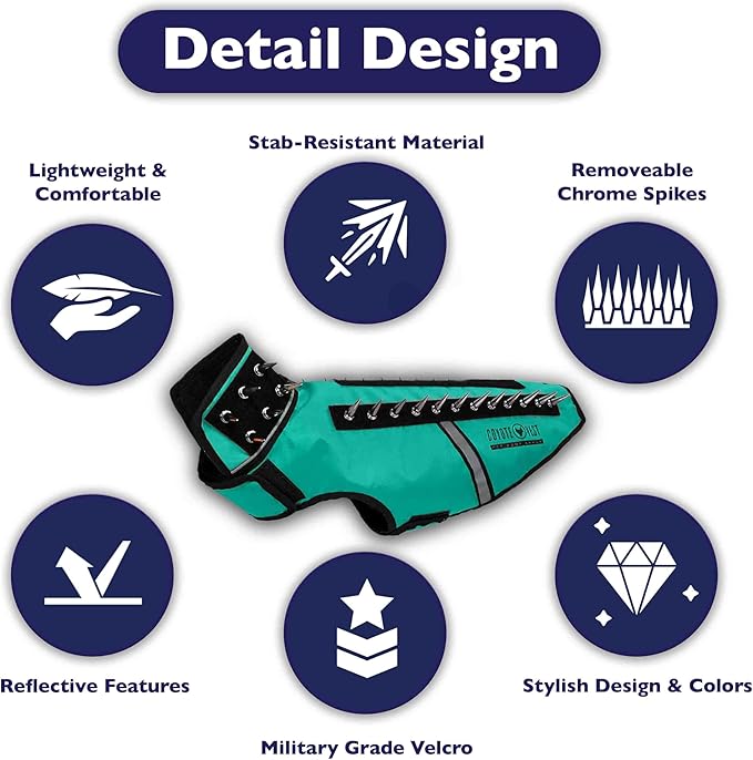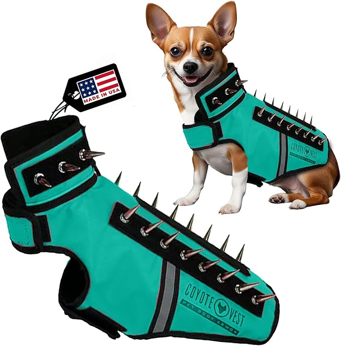 CoyoteVest SpikeVest Dog Harness Vest for Small Dogs, Reflective Dog Vest with Spikes to Shield Your pet from Coyotes, Raptor and Animal Attacks, Anti Hawk Vest, Made in USA (XS-Turquoise)