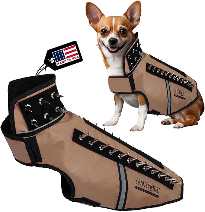 CoyoteVest SpikeVest Dog Harness Vest for Small Dogs, Reflective Dog Vest with Spikes to Shield Your pet from Coyotes, Raptor and Animal Attacks, Anti Hawk Vest, Made in USA (M-Texas Tan)