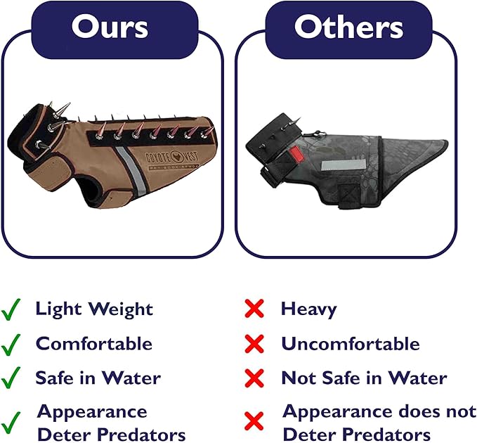 • COYOTE DOG VEST: PLEASE READ SIZING GUIDE BEFORE PURCHASING! Like a CoyoteVest, the purpose of the SpikeVest is to help slow down or prevent a surprise attack and give you enough time to react before serious injury occurs. The main difference is the SpikeVest uses two wide belts with Velcro while the CoyoteVest uses nylon straps with snap buckles.