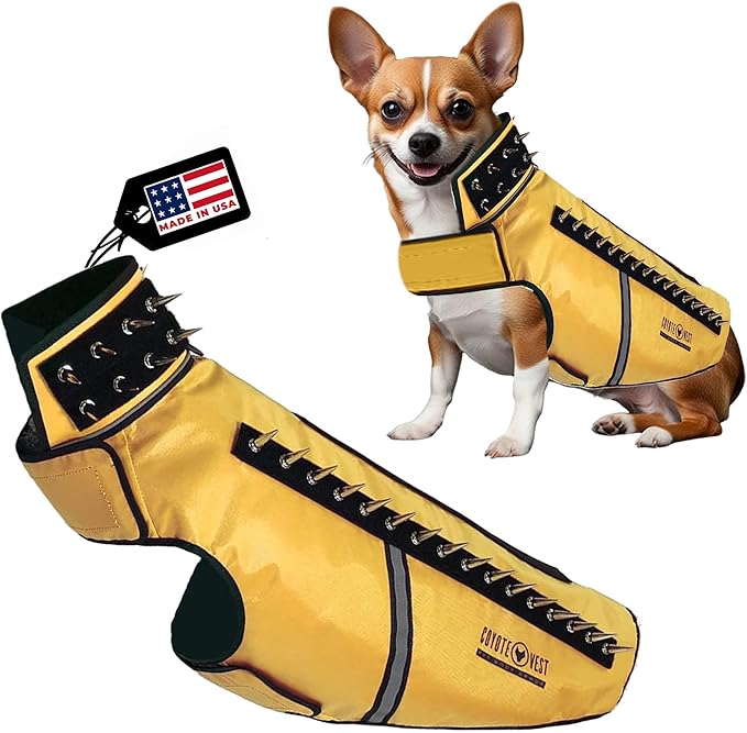 CoyoteVest SpikeVest Dog Harness Vest for Small Dogs, Reflective Dog Vest with Spikes to Shield Your pet from Coyotes, Raptor and Animal Attacks, Anti Hawk Vest, Made in USA (L-Yellow)