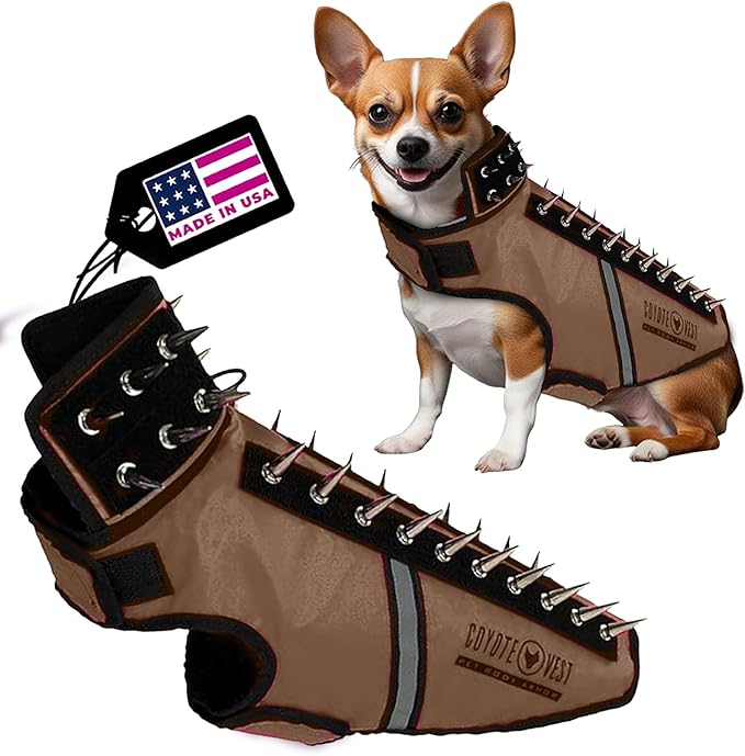 CoyoteVest SpikeVest Dog Harness Vest for Small Dogs, Reflective Dog Vest with Spikes to Shield Your pet from Coyotes, Raptor and Animal Attacks, Anti Hawk Vest, Made in USA (S-Texas Tan)