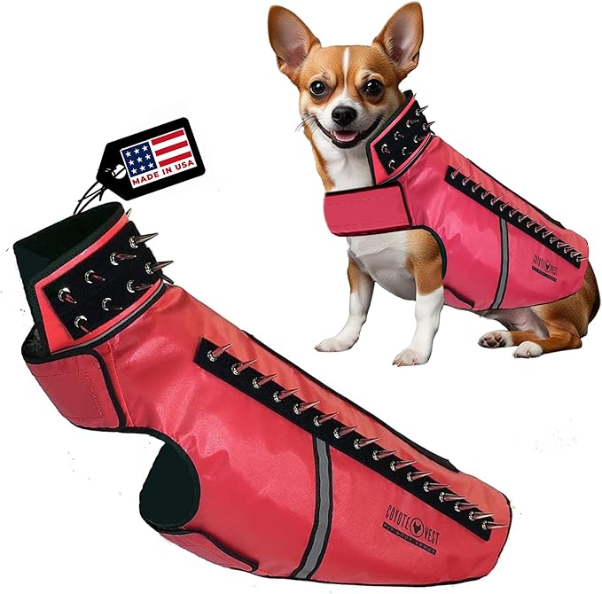 CoyoteVest SpikeVest Dog Harness Vest for Small Dogs, Reflective Dog Vest with Spikes to Shield Your pet from Coyotes, Raptor and Animal Attacks, Anti Hawk Vest, Made in USA (L-Red)