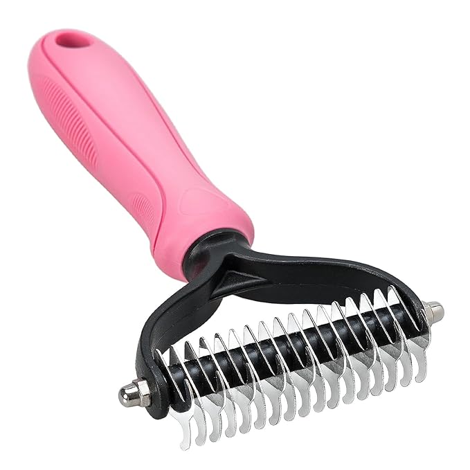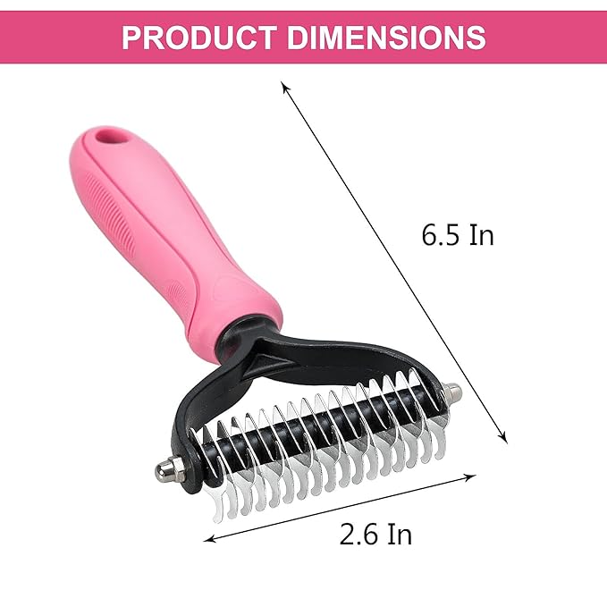 Undercoat Rake for Dogs, 2 Side Undercoat Brush for Deshedding and Dematting for Dog Cat Rabbit, Professional Pet Grooming HairTools, Removes Loose Undercoat and Nasty Shedding, Pink