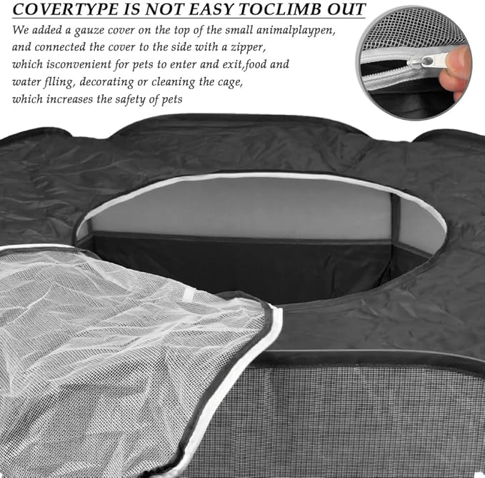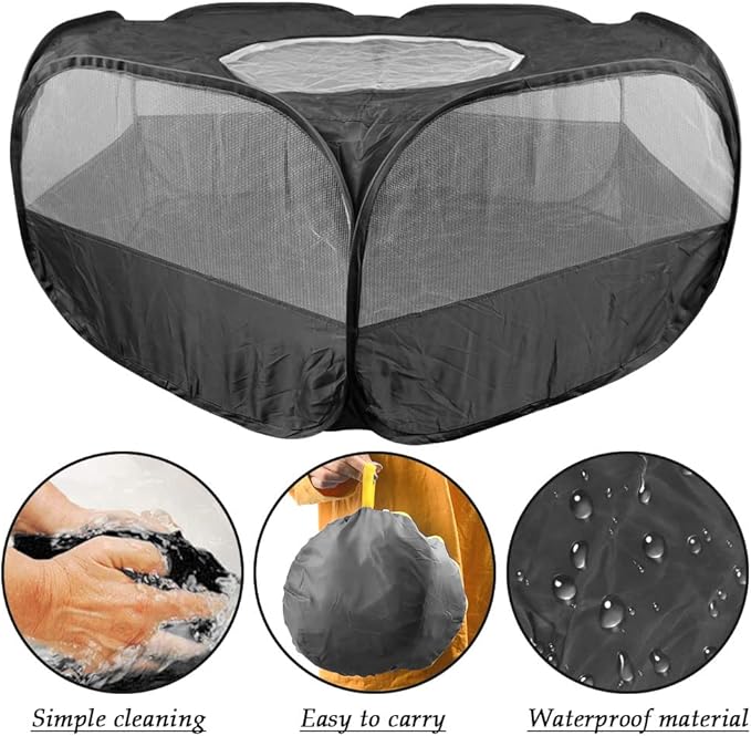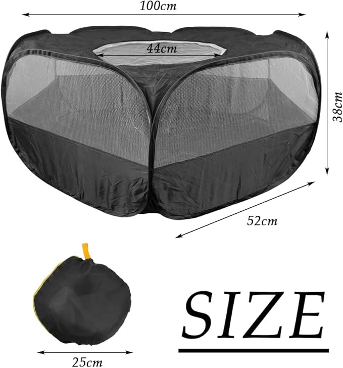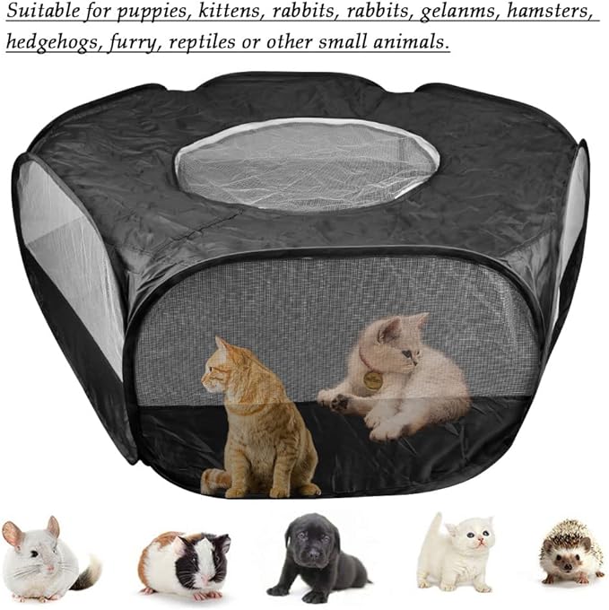 Small Animal Plaype Black, Breathable Pet Playpen Cage Tent Portable Fence Tent with Zippered Cover Pet Playpen for Puppy/Kitten/Rabbit/Hamster/Chinchillas/Guinea Pig Outdoor Indoor