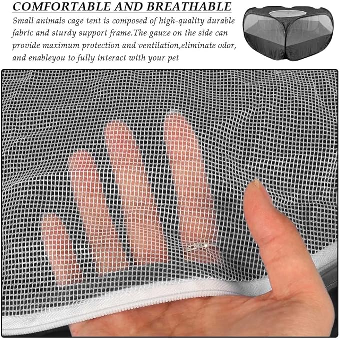 • 【Transparent & Breathable】- Small Animal Cage made of high-quality fabric cloth and sturdy support frame, breathable mesh all around, you could watch your pets at all times, as well as ensure the ventilation of the playpen. Provide a comfortable environment for your pet. Oxford fabric, easy to clean