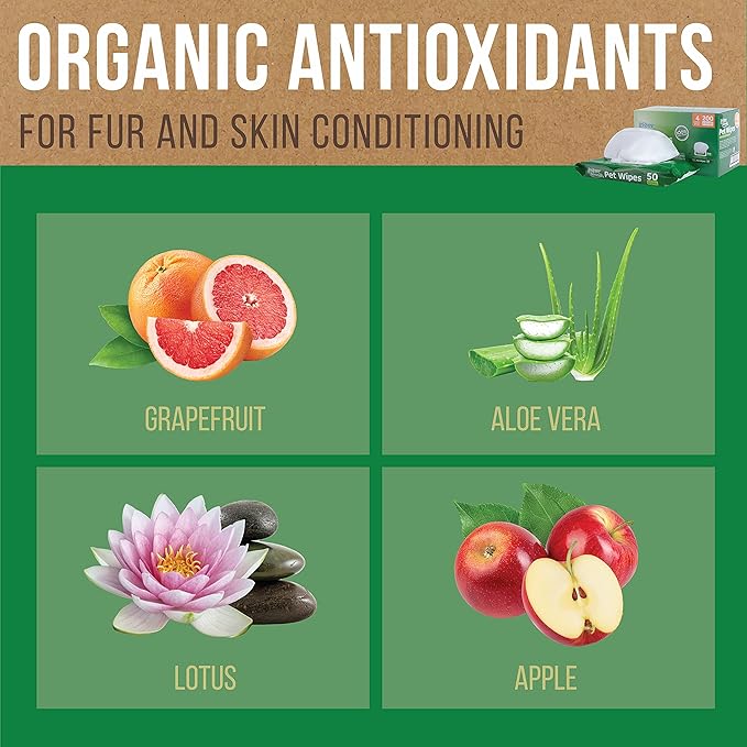 Inspire Naturals Pet Wipes for Dogs and Cats 100% Natural Plant Based with Organic Antioxidants, Dog Wipe Cleaning Deodorizing | Cat Wipes | Puppy Wipes | Dog Wipes for Paws and Butt (200ct - 4 Pack)