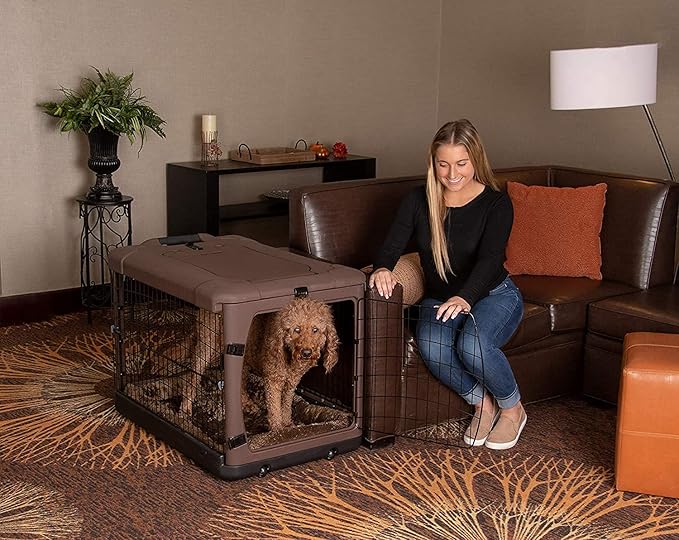 Pet Gear “The Other Door” 4 Door Steel Crate for Dogs/Cats with Garage-Style Door, Includes Plush Bed + Travel Bag, No Tools Required, 3 Models, 3 Colors
